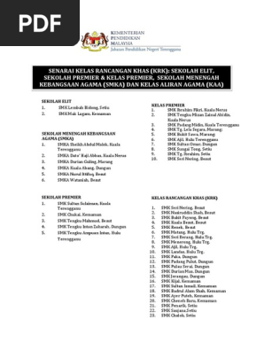 Senarai Krk Sekolah Elit Premier Kelas Premier Smka Kaa Diterengganu Pdf